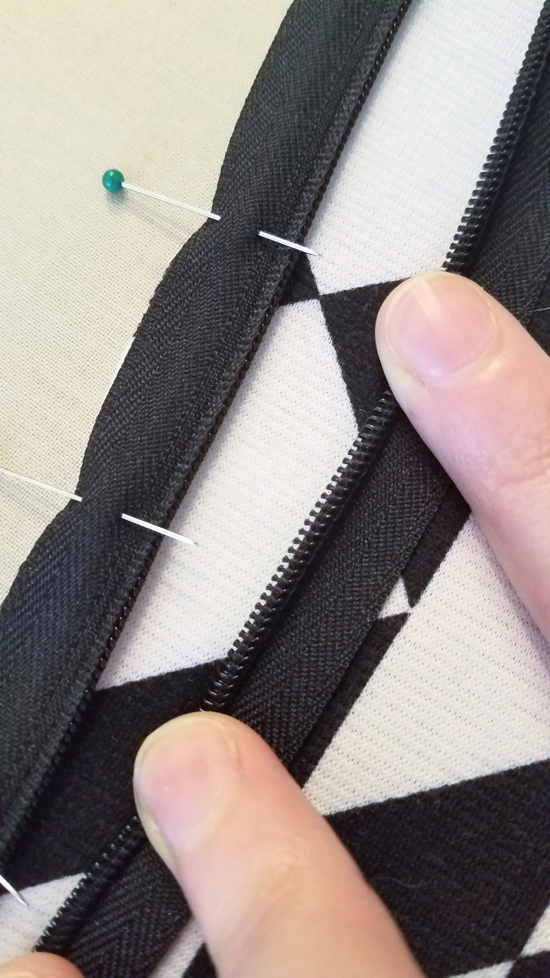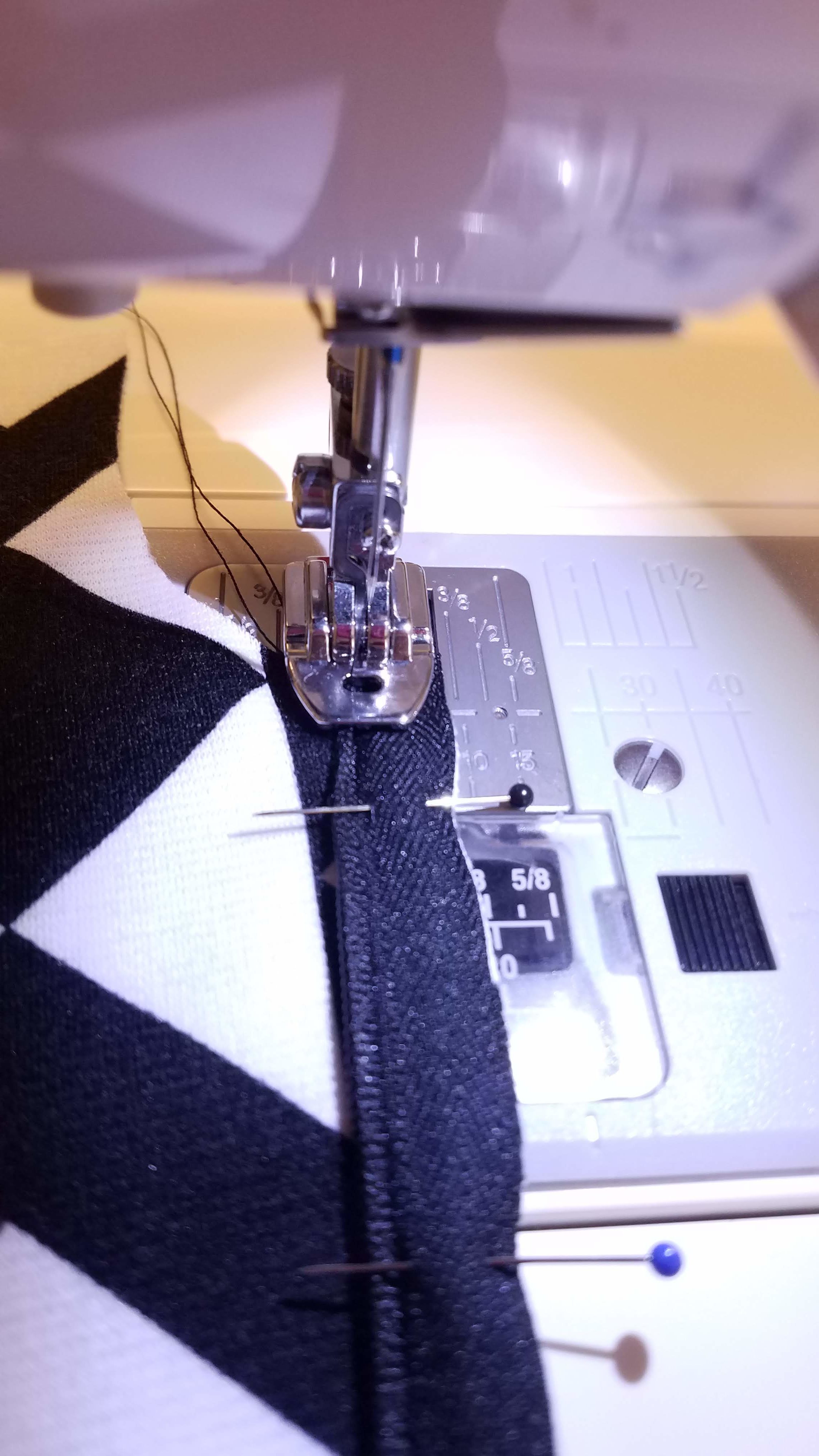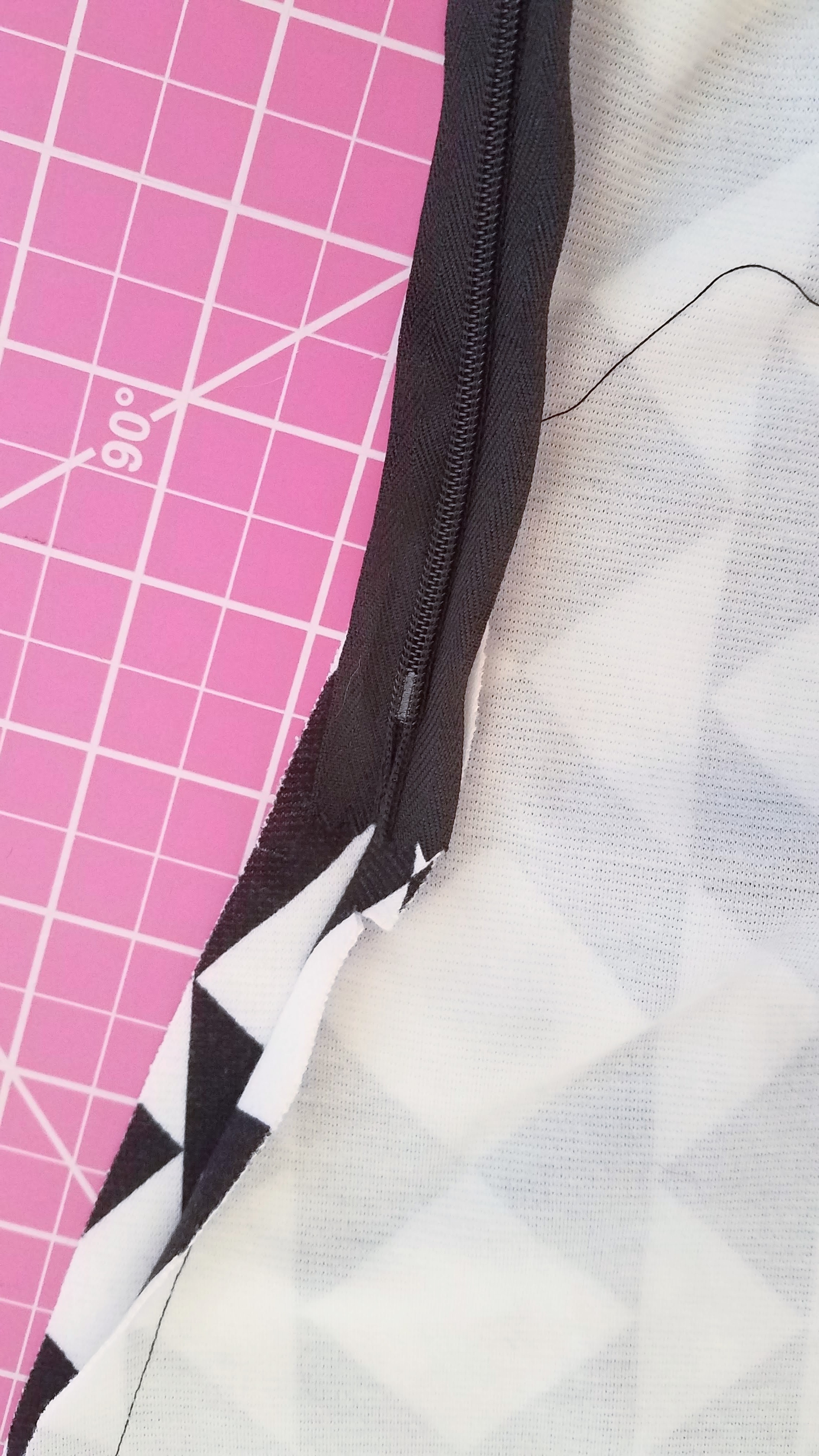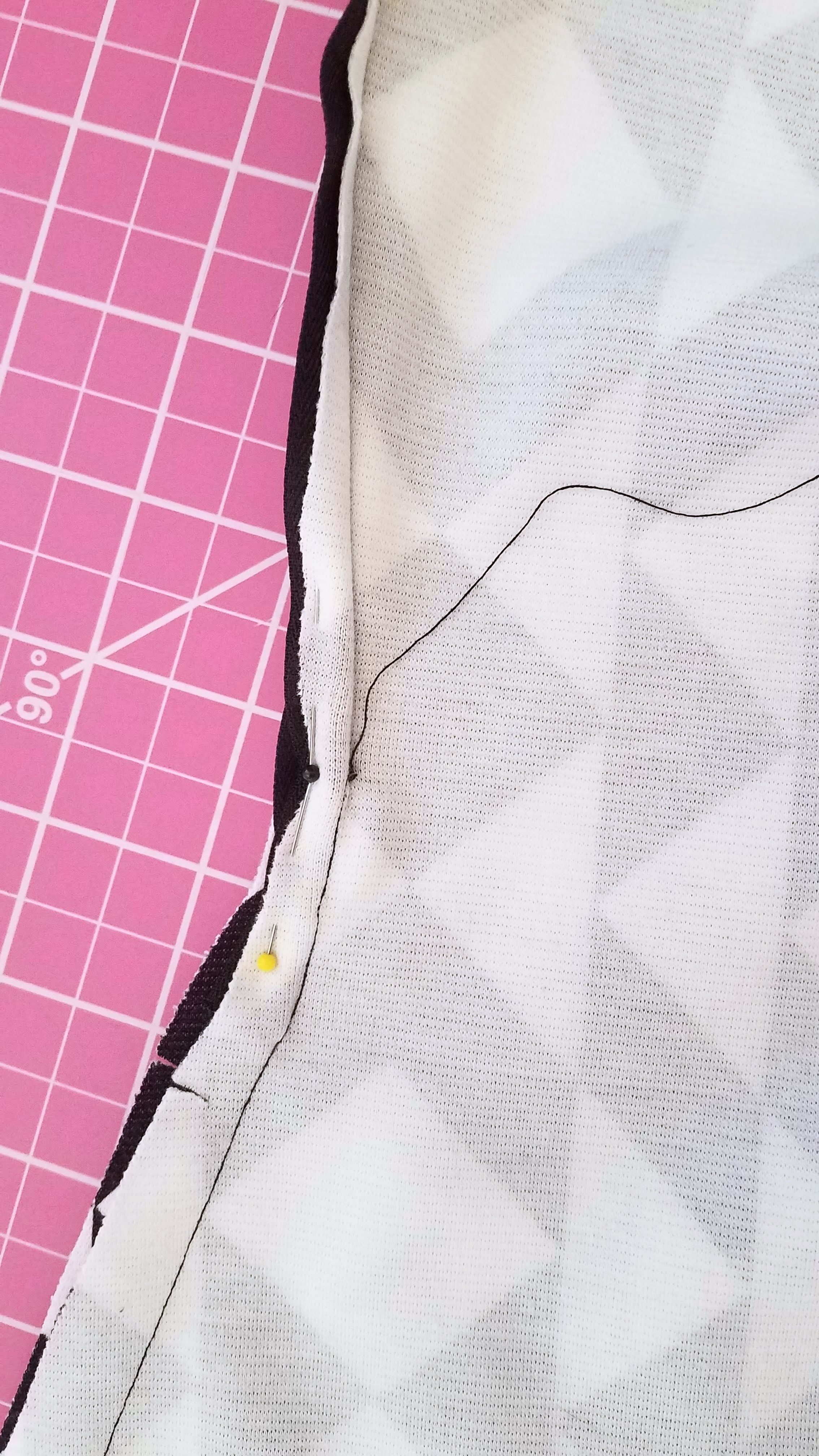 I think it means… Press the seam open and top stitch the seam allowance along both sides of the seam. *Note: I did not top stitch. Because my fabric pattern has pretty much the highest contrast between two colors possible, there would be no thread I could possibly use to make that seam blend in. Black would be too visible against the white areas, and white would be too visible against the black areas. So I skipped this and simply pressed my seam open.